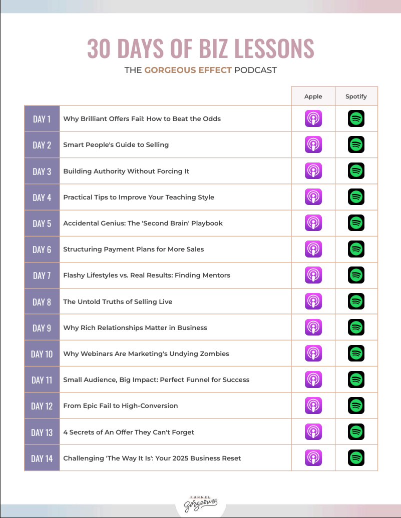 In each episode, Julie and Cathy pull back the curtain on their formula for creating visually stunning funnels that don't just look good—they convert like crazy. With real-life examples and no-nonsense advice, they'll guide you through the do's and don'ts of blending design, copy, and irresistible offers that captivate and convert.